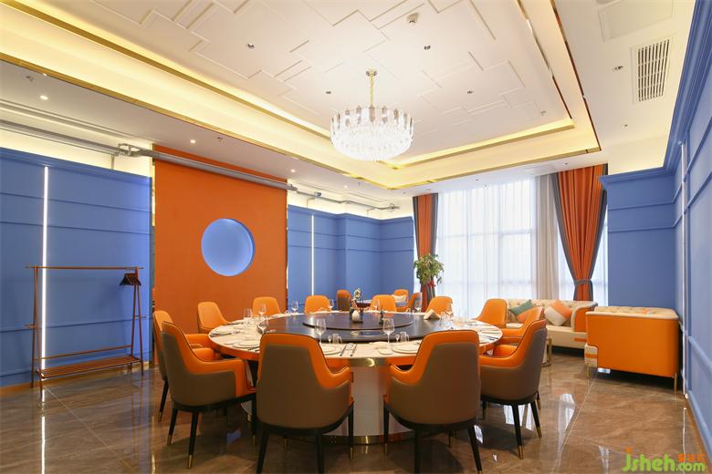 在海韻鮮風(fēng)空間景觀里,深海與大陸的交匯被巧妙地呈現(xiàn)出來(lái)。海鮮餐廳設(shè)計(jì)空間以海洋元素為本,又以人文氣息與空間藝術(shù)為底蘊(yùn),在造型上以垂釣式的吊燈為主,輔以射燈或筒燈等,營(yíng)造一方層次分明的“光彩”空間,為空間注入輕盈明亮的氛圍感。豐富的紋理傳遞出細(xì)膩的質(zhì)感,讓空間于細(xì)微處?kù)陟谏x。