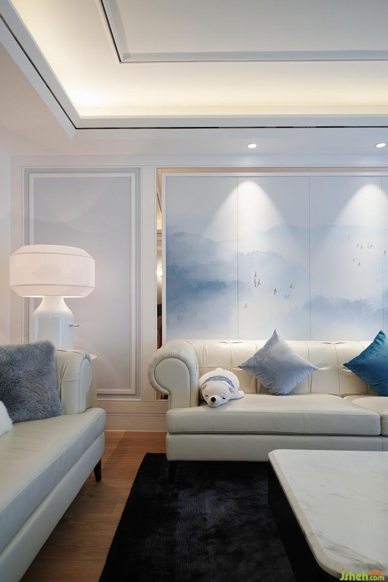 只見高亮的香檳金色和一抹詩意的藍色山景畫,不但大器又壓場,而且也讓空間里的湖藍色,既有旋律變化卻不顯得突兀?!更c睛,就在乎這一點,呼之欲出的應(yīng)和?!?