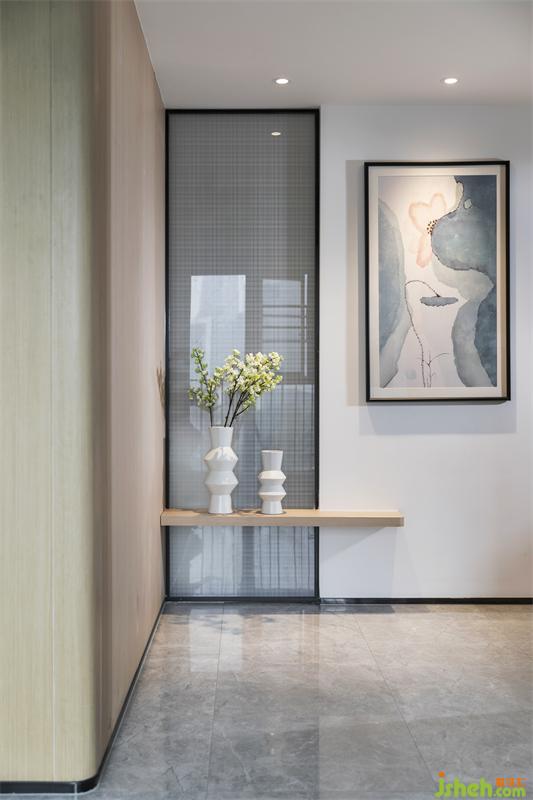 低飽和度的灰為主基調(diào)色系,以暖色的原木飾面裝點空間,隱隱散發(fā)出溫和的氣息。深圳裝修設(shè)計整體空間在石材與木色中尋求一種暖性的色彩平衡,同一色系的不同色 階過渡中,既富有色彩明度的變化,又將色調(diào)完美協(xié)調(diào),觀感柔和,并通過精心安置的照明與隱約可?的細(xì)節(jié),營造出安然于心的舒適空間。