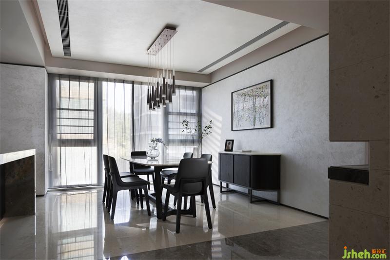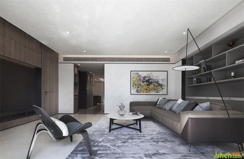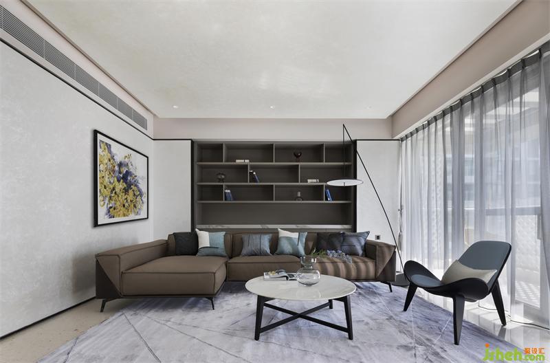 整個客廳墻面留白,延伸東方美學與時尚的融合,穩(wěn)重的褐色貫穿其中,形成高反差的色調(diào)對比,在追求當代生活方式的同時不忘將東方美學融入其中,回歸生活本質(zhì)。