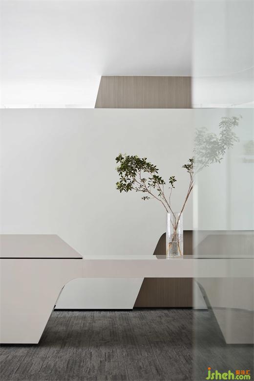 圓形裝置是辦公室的共享區(qū),承載著溝通、探討與觀念的碰撞。垂直面上的大圓形,在平面上則是一個(gè)長(zhǎng)的橢圓,擁有最好的景觀面。善擇基金辦公設(shè)計(jì)師將它與游艇的形式結(jié)合,打造奢適的高端商務(wù)氛圍。它的正面角度仿佛一個(gè)舵機(jī),在空間中昭示企業(yè)發(fā)展的方向感。而自然變化中天光的加持,又讓這一路發(fā)展呈現(xiàn)最美的景致。