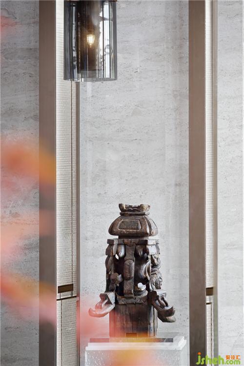 木雕是揭陽當(dāng)?shù)貍鹘y(tǒng)手工技藝的一種,歷史悠久,萌芽于新石器獨木舟生產(chǎn)時期,定型于唐宋,成熟于明代;二是山海交錯地理環(huán)境促成的粗獷、古樸、雄渾的風(fēng)格,有別于潮州的精細(xì)風(fēng)格。以神像、神轎、木獅、饌盒等巧奪天工,圓雕是揭陽木雕的強項,因之而成為地方特色濃烈的一個手工藝術(shù)體系。我們在產(chǎn)品區(qū)的四個角,分別裝置于當(dāng)?shù)鼐x民間木雕藝術(shù)品。
