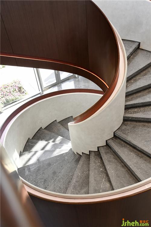 裝置龍燈與旋轉(zhuǎn)藝術(shù)樓梯呼應(yīng)連接。
