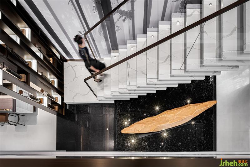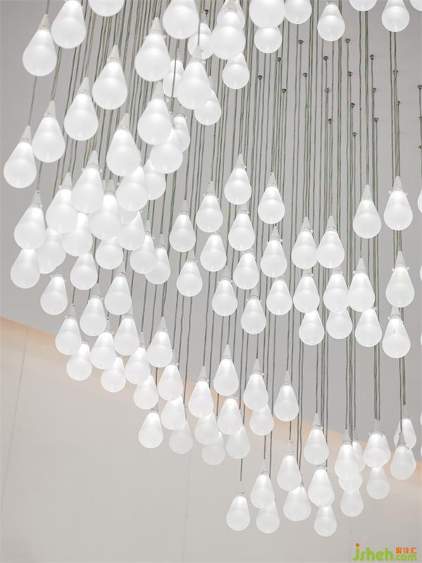 ”急雨才收翠色新,長青樹上露沉沉,迷蒙白霧輕如許,欲上秋空作暮云“——寂蓮法師。水滴形漸變光藝術吊燈,意若南方林間小雨,溫潤大地萬物,水生萬物,帶來希望與未來。