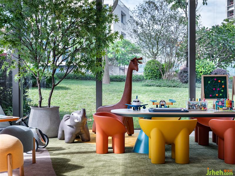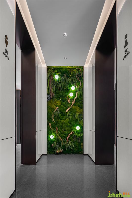 售樓處設(shè)計(jì)洗手間過(guò)道以當(dāng)?shù)丨h(huán)境特點(diǎn)為靈感,模擬山林隱逸的生活環(huán)境,立體出世,抽象而不抽象。螞蟻的觸角在試探正如兒童的對(duì)未來(lái)無(wú)限未知的興趣,兒童區(qū)的山林趣味性。