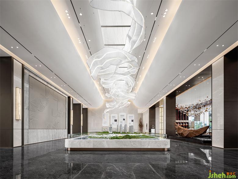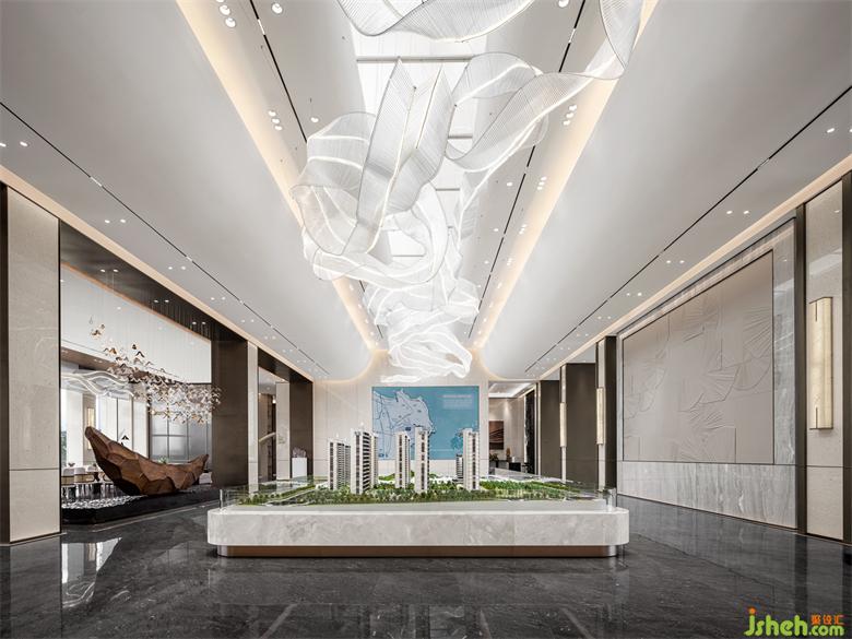 融合現(xiàn)代建筑感的有序節(jié)奏排柱,招商體驗(yàn)中心設(shè)計(jì)結(jié)合自然的材質(zhì),形成一種步入式的儀式感從海岸線的形態(tài)中找尋靈感,將抽象與具象并存相糅合,配合接待區(qū)門口的兩張藝術(shù)曲線長凳,燈與家具使得靈動(dòng)與寧靜,粗獷與纖柔相呼應(yīng)。