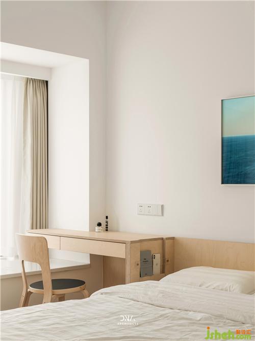 次臥室僅用了樺木一種材質(zhì),以不同的形態(tài)尺寸變換著不同的功能形式。樺木的質(zhì)感除了外在的溫潤杭州室內(nèi)設(shè)計(jì)師,還散發(fā)著一種特殊的清香。通過氣味感官營造出自然樸實(shí)的居住氛圍。