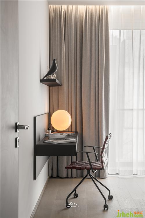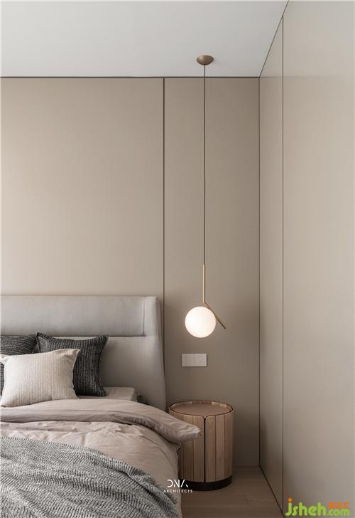 次臥內衛(wèi)通過墻體上方的高窗,引入外部的光線,頗具趣味性。