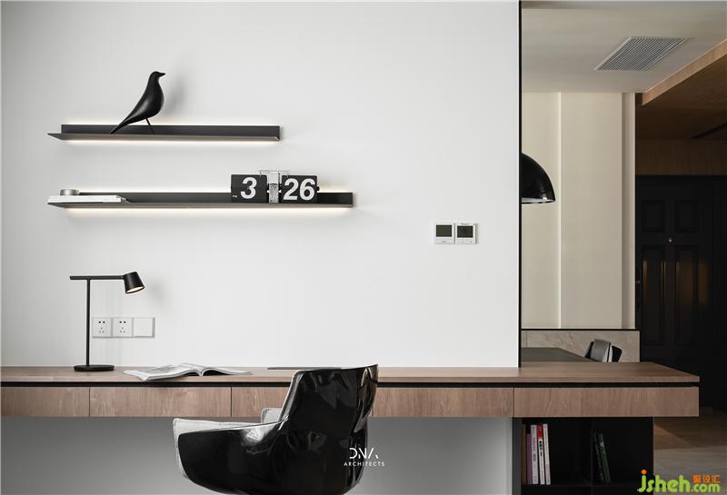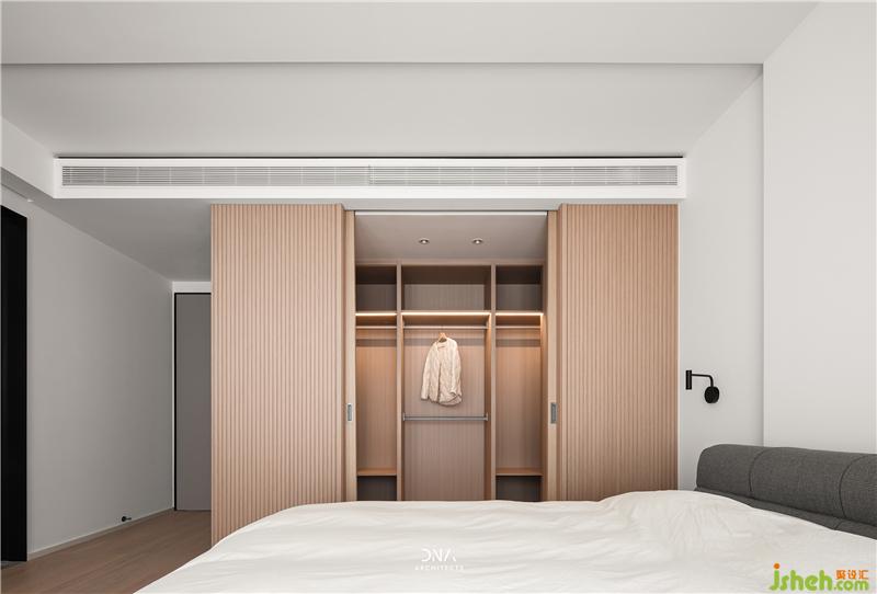 With two simple materials white and wood are used to express the quietness of the bedroom, and a strong sense of lines is used to further depict the details of the outline.