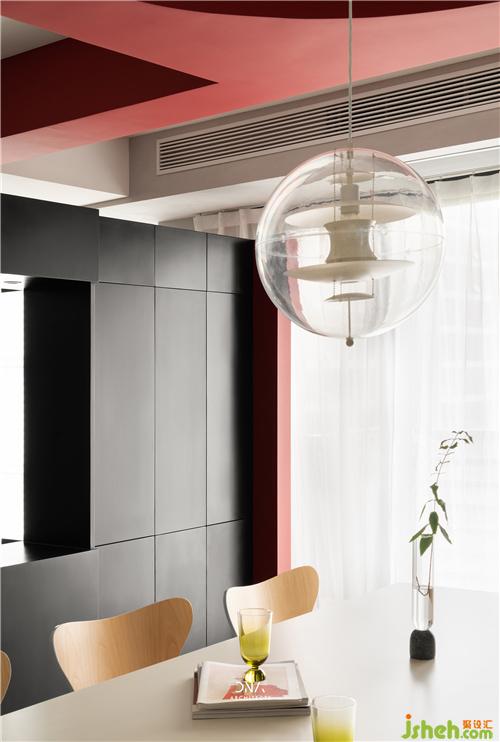 The design concept of color and geometry is strong enough, so the designer subtracted the door cover to break the routine. Create interesting interactive visions.