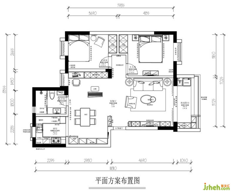 2,洗手間門向調(diào)整到廳,外觀通過隱形門巧妙裝飾