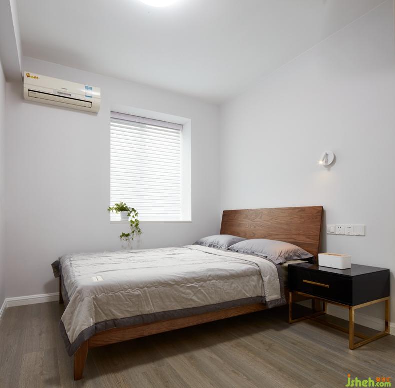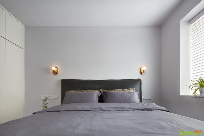 一床,一幾,一壁燈,一束光透過百葉窗,一切顯得都剛剛好,極簡的細節(jié)到位也實用。