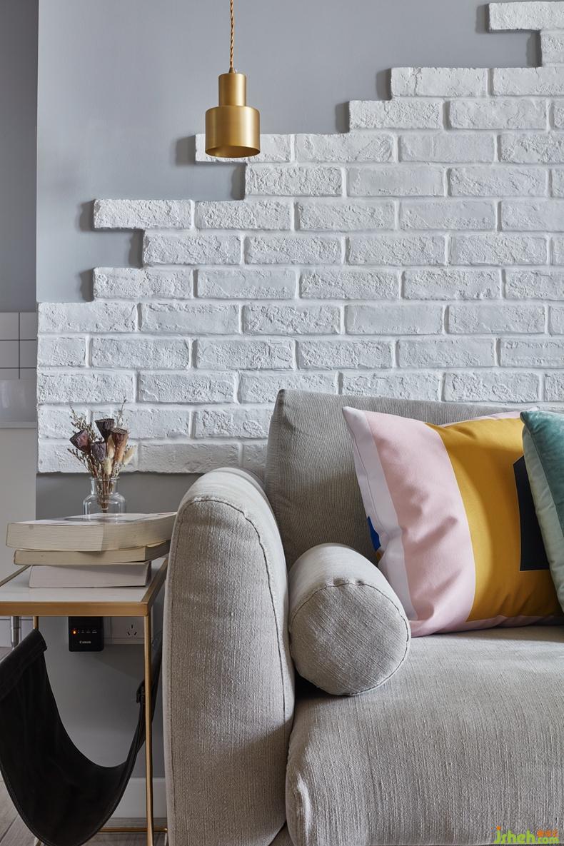 客廳有了電視墻的灰綠色,森林系的自然感純正細(xì)膩。襯托對比沙發(fā)墻的白色文化石,其粗狂的斑駁感,仿佛徜徉在復(fù)古的世界中。