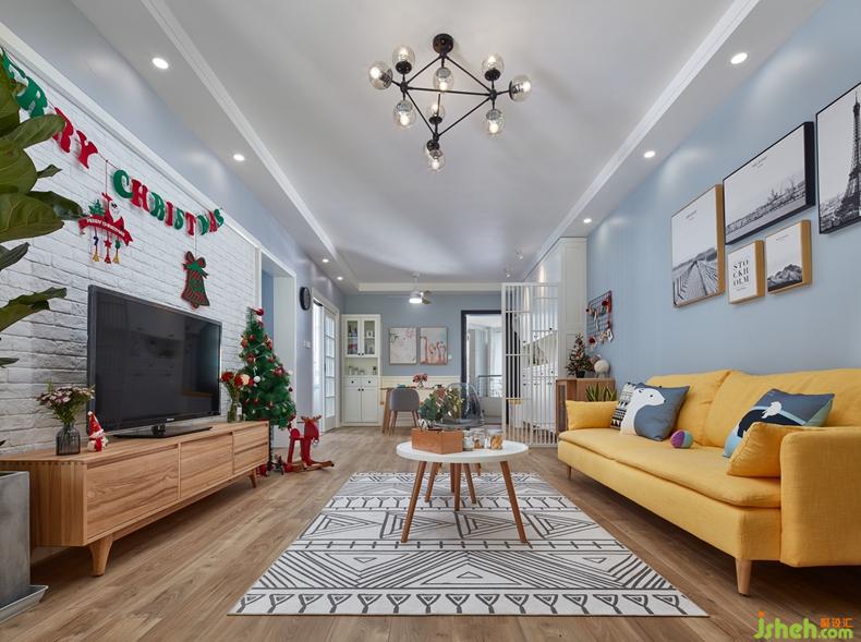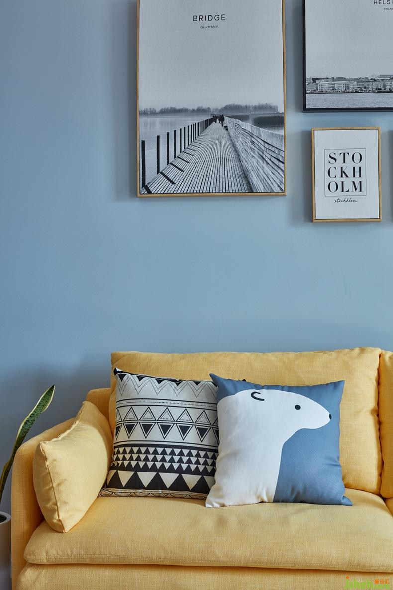客廳:三人位的黃色布藝沙發(fā)為主角,而沙發(fā)墻面的組合掛畫,在內(nèi)容上選用灰色畫面,并搭配木質(zhì)邊框,給空間的和諧增添很多元素。