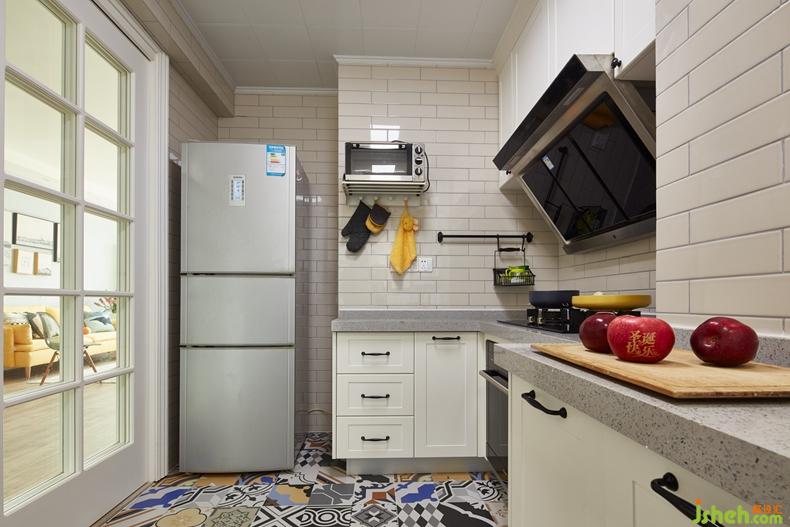 廚房:簡潔的櫥柜門板襯托著墻面長條磚,在設(shè)計(jì)上采用方塊的變幻組合,而地面具有LOFT的花磚,卻給予空間的變幻動(dòng)感上帶來很大變化,廚房的操作空間就不應(yīng)該那么沉悶。