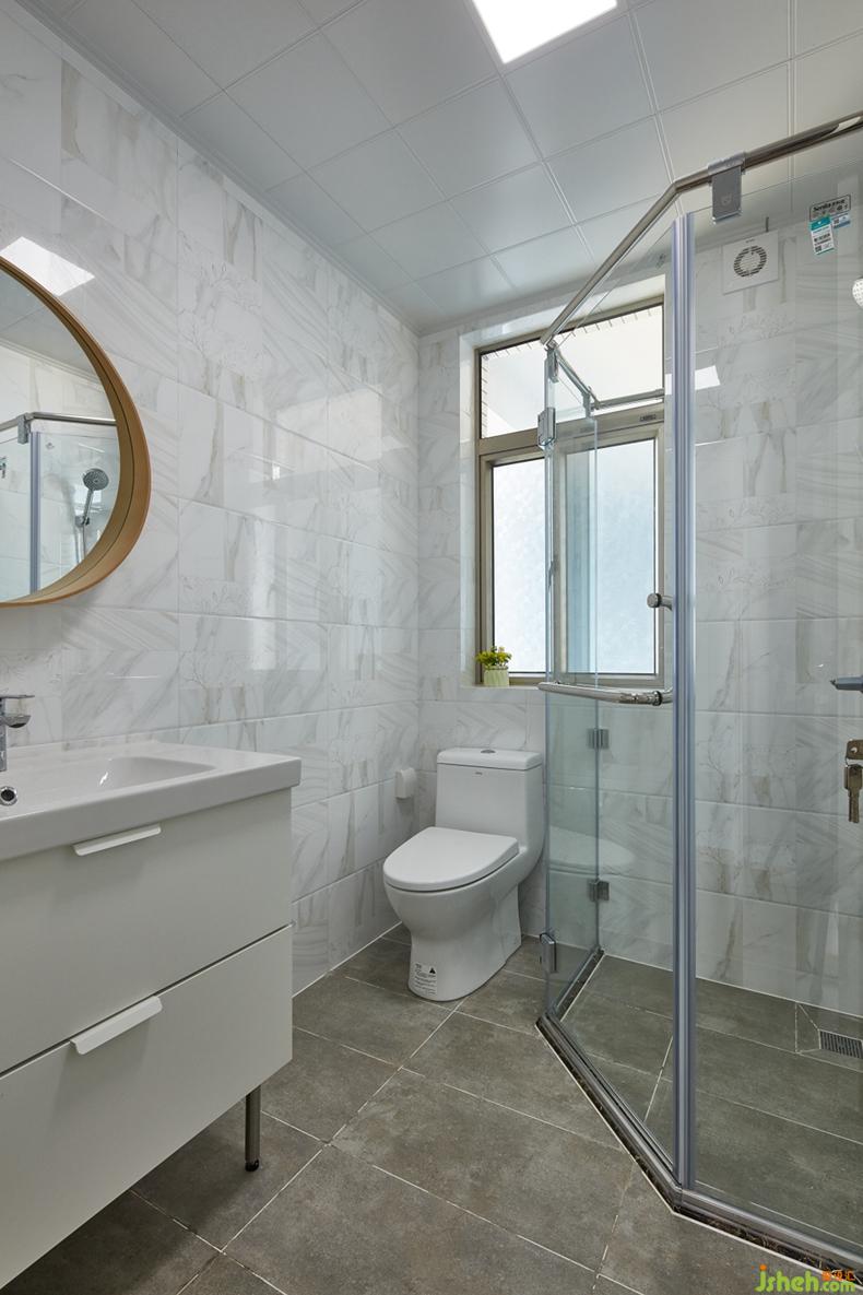 公衛(wèi):考慮公衛(wèi)使用的頻繁,墻面滿鋪大面小格子的造型磚,讓空間不乏味而又實(shí)用好搞衛(wèi)生。