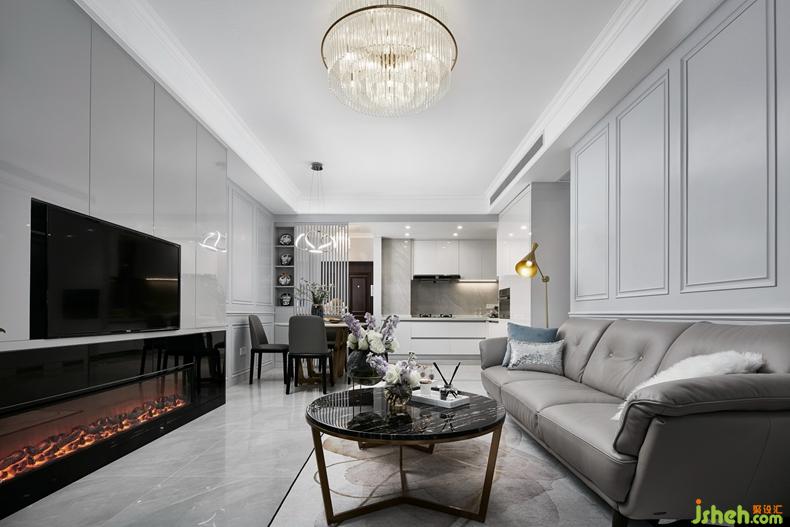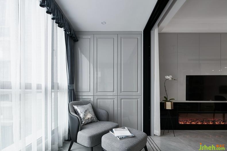 沏上一壺清茶,點上一座熏香,灰調(diào)的空間中彌漫著裊裊輕煙。電視組合柜底部電壁爐燃燒的仿真火焰,更加讓人沉浸在此刻享受的氛圍。生活的節(jié)奏慢下來,可以在此時感受舒適愜意。