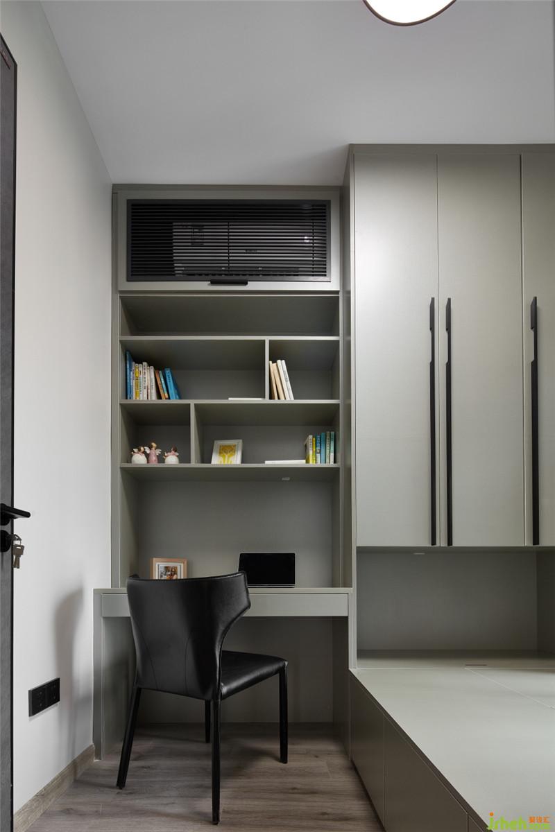 書房利用榻榻米組合柜,在功能及實用美觀上都可以得到一一解決。在有限的空間內(nèi),全灰調(diào)的定制組合柜,也讓空間保持整體化一的同時,擁有視覺的舒適。室內(nèi)設(shè)計師