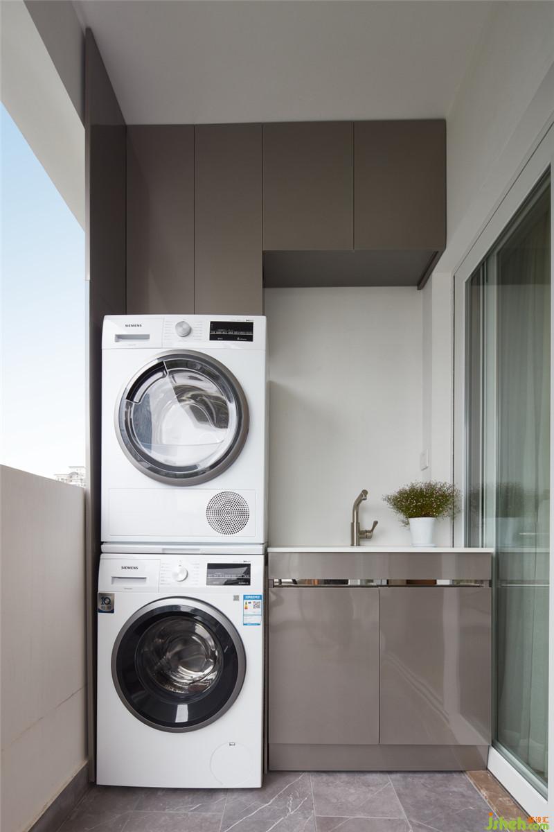陽臺靠墻的一側(cè)設(shè)計洗衣機(jī)伴侶收納組合,尺寸把控的剛好,底部留有合適的操作空間,頂部預(yù)留收納位置,中間還預(yù)留個MINI洗衣機(jī)位。每個空間的合理規(guī)劃,提前考量,在設(shè)計中體現(xiàn)的尤為重要。