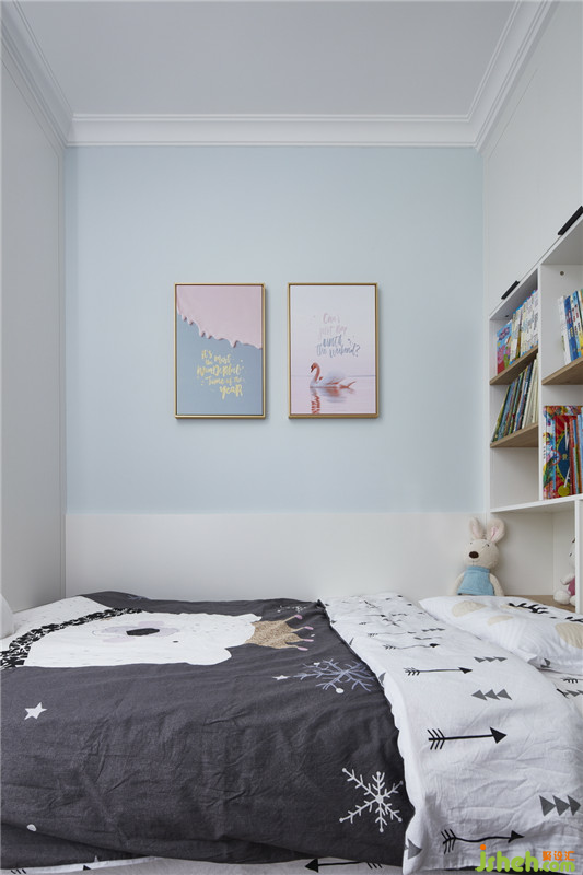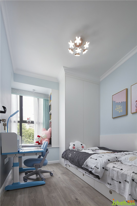 女孩房的設(shè)計(jì)搭配中,排除了以粉色為大面積的常見手法。不按常理出牌,也許是一些設(shè)計(jì)師堅(jiān)持設(shè)計(jì)的初衷。薄荷綠讓整個(gè)空間清爽且有童真的活潑感。榻榻米靠墻設(shè)計(jì),書柜,衣柜,一樣都不能少。