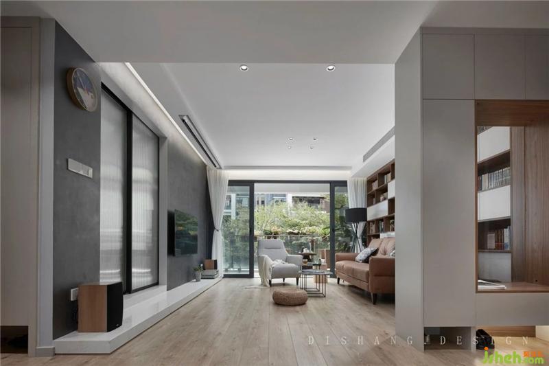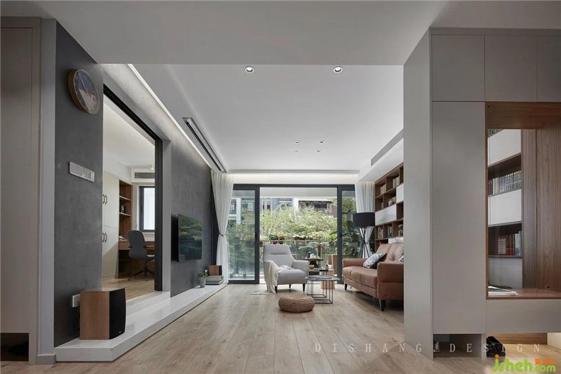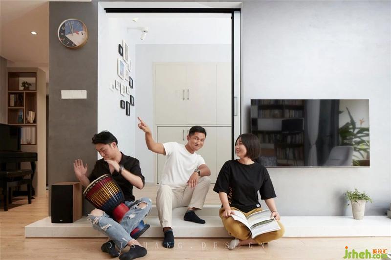 增設(shè)書房,抬高形式的設(shè)計,客廳與書房的互動性增強,空間更加開闊、有趣。