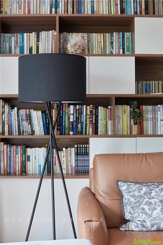 客廳也是多元化的。整面墻設(shè)計成藏書樂園,與玄關(guān)鞋柜相連接,造型獨特且符合人性化設(shè)計。裝修設(shè)計
