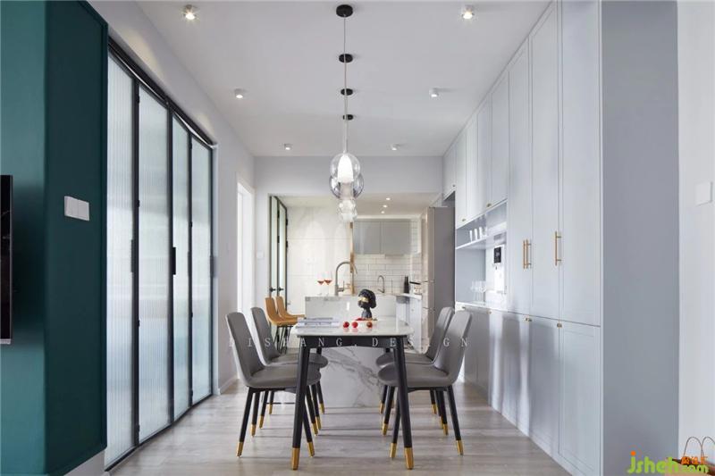 1、打通廚房與餐廳之間的墻壁,增加餐廚空間在視覺上的延展性