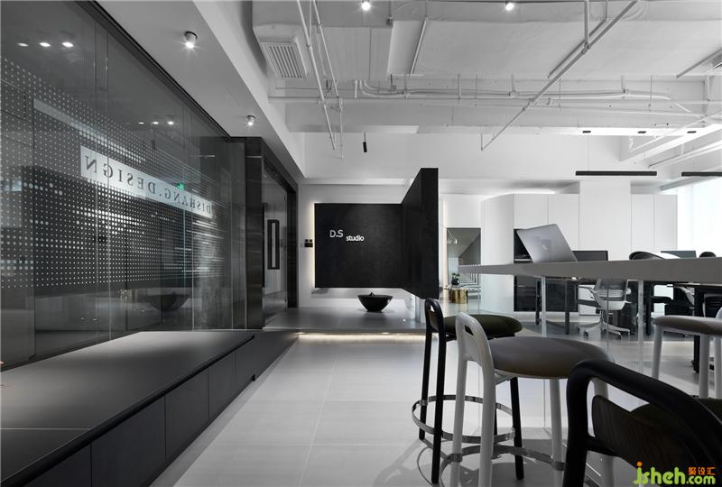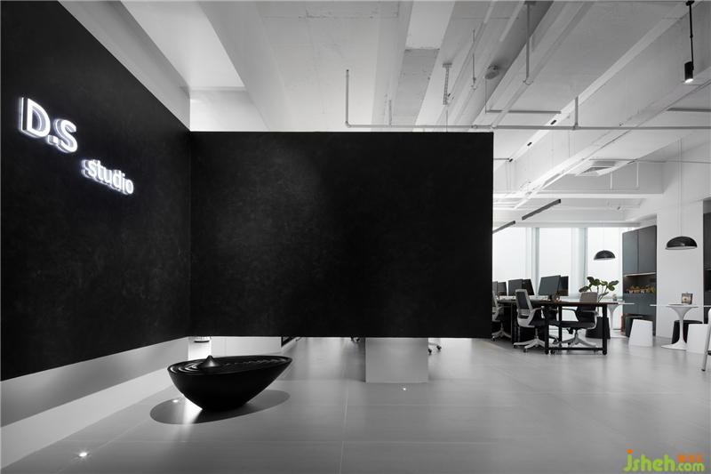 入戶處是我們的名片---“D.S studio”,辦公設(shè)計(jì)以黑色的KD板為底,設(shè)計(jì)成L型懸掛在墻面上,充滿設(shè)計(jì)感的同時(shí)又起到遮蔽的作用,讓外界對(duì)內(nèi)部保留神秘感。