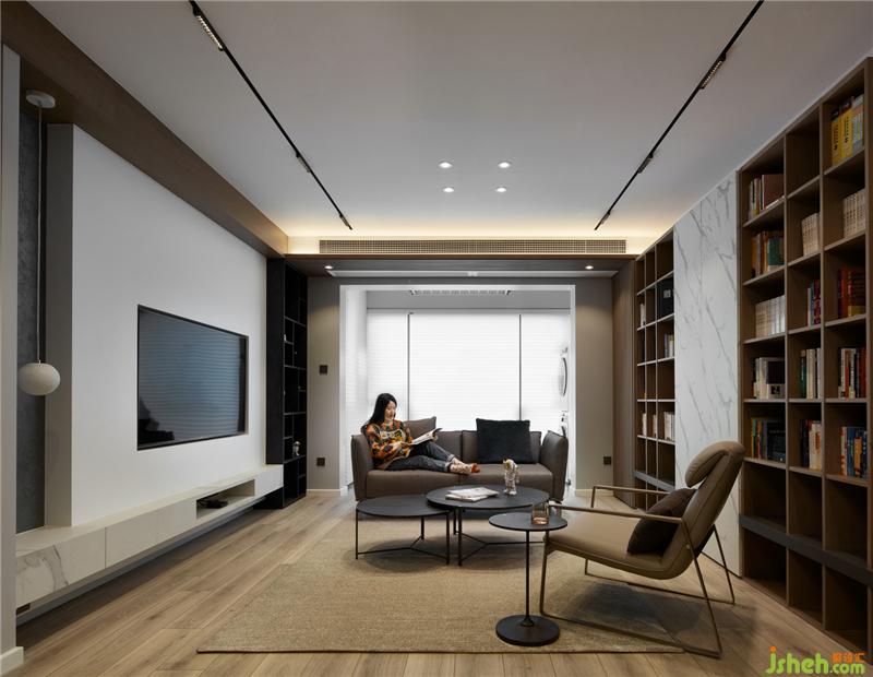 開(kāi)放性多功能收納柜將日常的小驚喜匯聚一起,一開(kāi)一合間,書(shū)香四溢的讀本和造型別致的藏品,各自釋放著品調(diào)十足的韻味。細(xì)節(jié)處,則透過(guò)石紋等材質(zhì)搭佐,在沉穩(wěn)率性之間,讓空間層次躍然展開(kāi)。