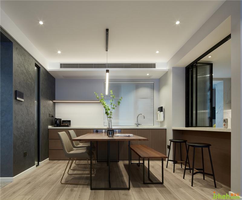 餐廳選用不規(guī)則收邊桌,讓餐桌上的美食更有彈性。和諧的比例。純粹的素材展現(xiàn)品質(zhì),與周?chē)目臻g展開(kāi)了美好的對(duì)話。