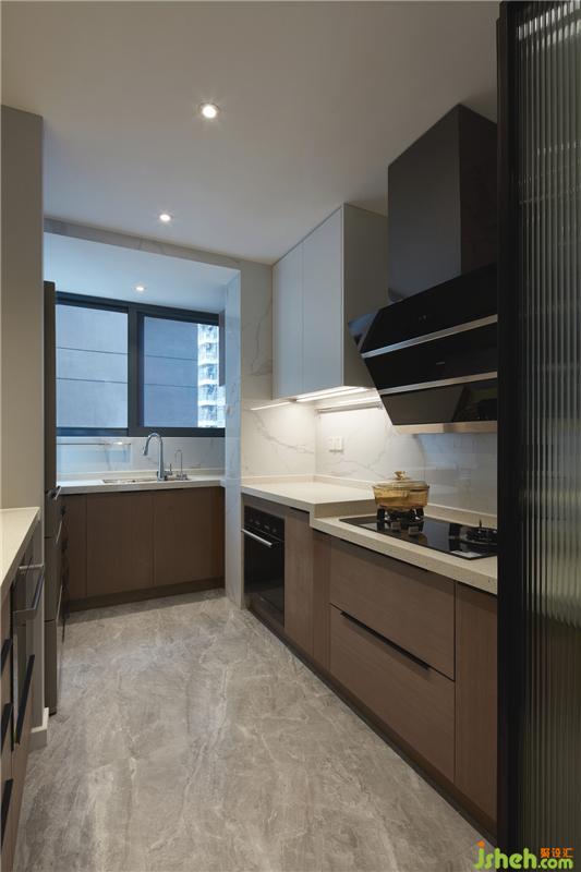 廚房門(mén)口亦裝有折疊玻璃門(mén),讓廚房在開(kāi)放式和封閉式之間隨意切換,且絲毫不影響采光,空間變得更通透。一把米,一瓢水,幾顆紅豆,慢慢熬煮,幸福的味道便層層疊疊由近及遠(yuǎn)地彌漫開(kāi)來(lái)。