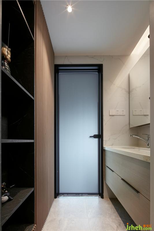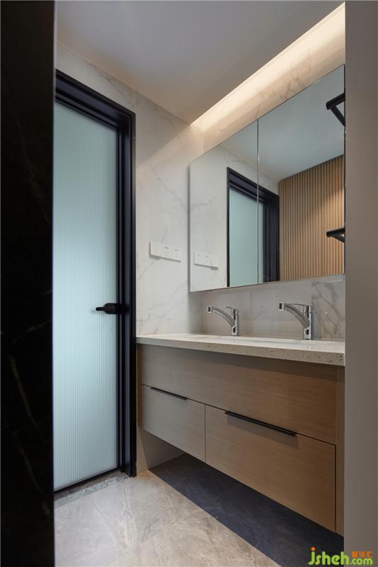 讓設(shè)計與品質(zhì)生活完美融合;鏡柜方便收納各類清潔用品,懸空的臺盆柜方便清潔,下方抽屜可收納日常雜物。濕區(qū)使用窄框長虹玻璃門,透光、簡潔,讓干區(qū)更為通透。