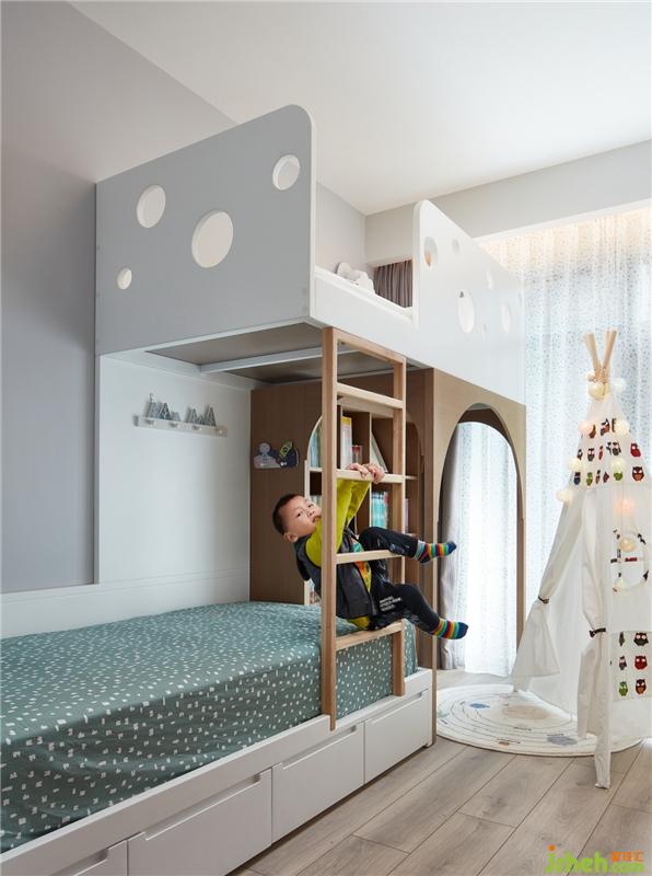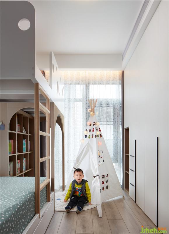 柔和的色調(diào)讓人倍感輕松,通過色彩對比使空間更加生動、活潑,打造閱讀區(qū)與玩耍區(qū),兩側(cè)的書架和收納柜可以放置常看的書籍繪本,幸福童年從這里開始,在這剛剛好的日子里,享受生活,享受童真。