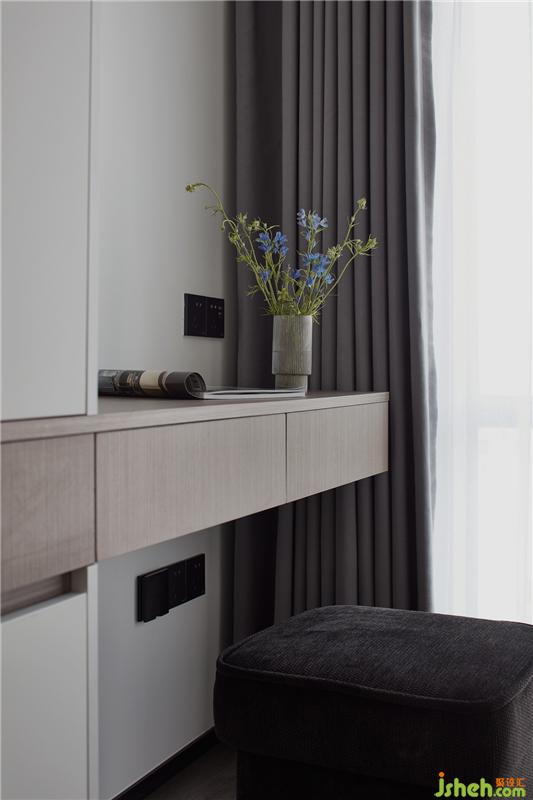 灰色與木色交匯出細(xì)膩雅致,配上床頭氛圍燈,增加休憩空間的品質(zhì)感,予人溫暖而細(xì)膩的慰藉,靜物之美。