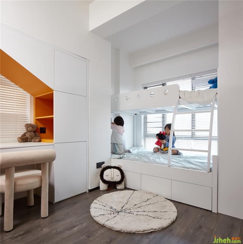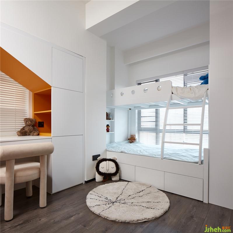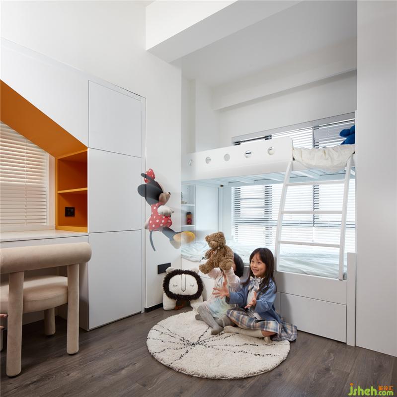 休息區(qū)、娛樂區(qū)、學(xué)習(xí)區(qū)動靜分明。溫馨又自然,適當(dāng)留白,剩下的伴隨成長留給她們自己去書寫。