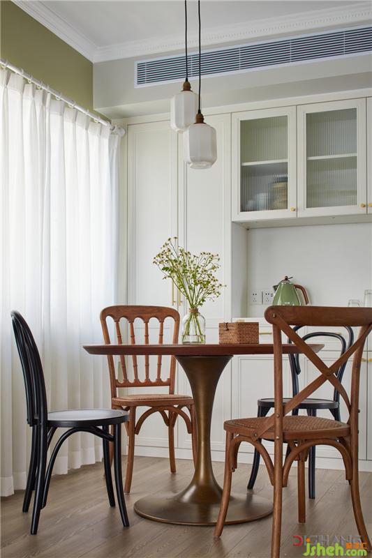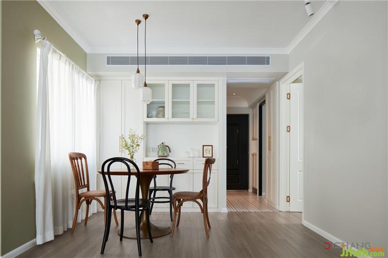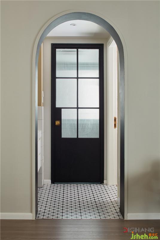 拱形門洞為空間增添幾分靈動感和趣味性,地面與玄關(guān)、廚房的黑白花磚相呼應(yīng),散發(fā)迷人的復(fù)古魅力。