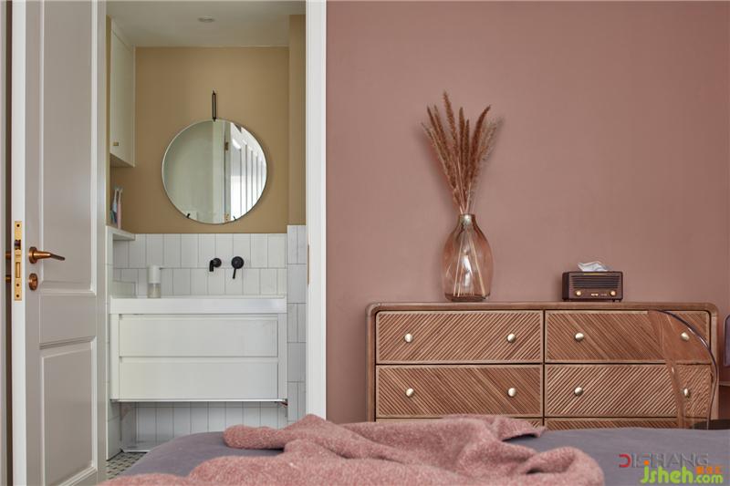 臟粉和白色的乳膠漆拼接出油畫般的溫柔和夢幻,含而不露,保持著整個空間的色彩平衡。
