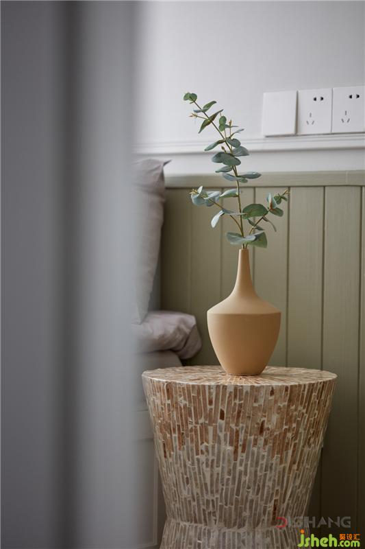 白色空間加入姜黃與抹茶色作點綴,營造出一種舒適靜謐的氛圍。