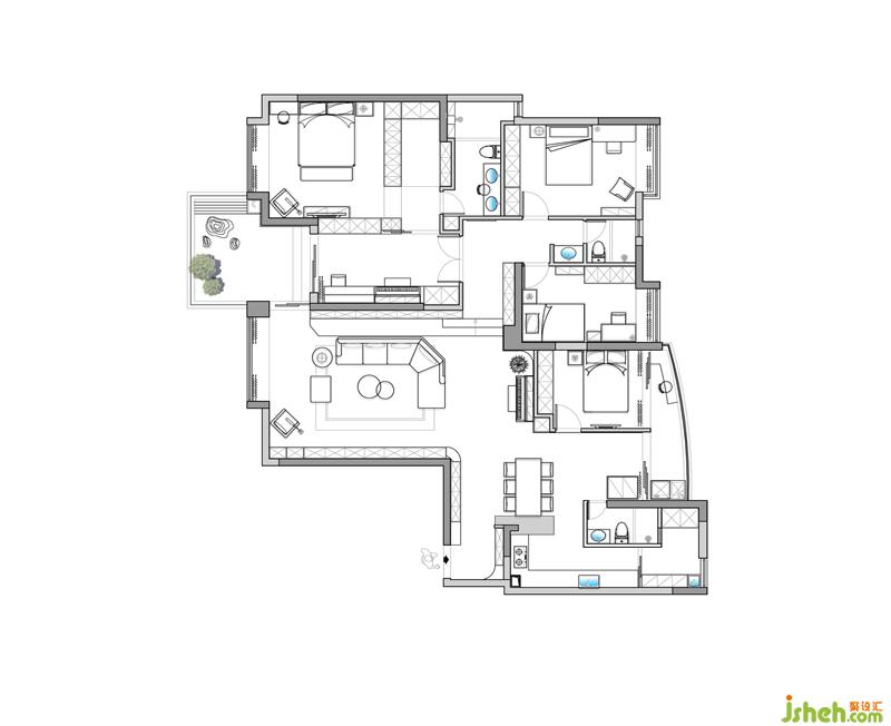 3、優(yōu)化部分墻體結(jié)構(gòu),收納顏值滿滿;