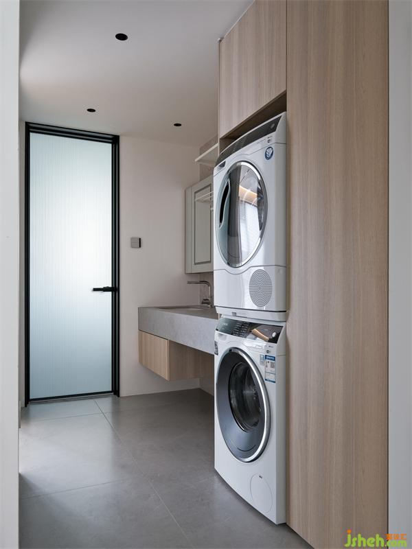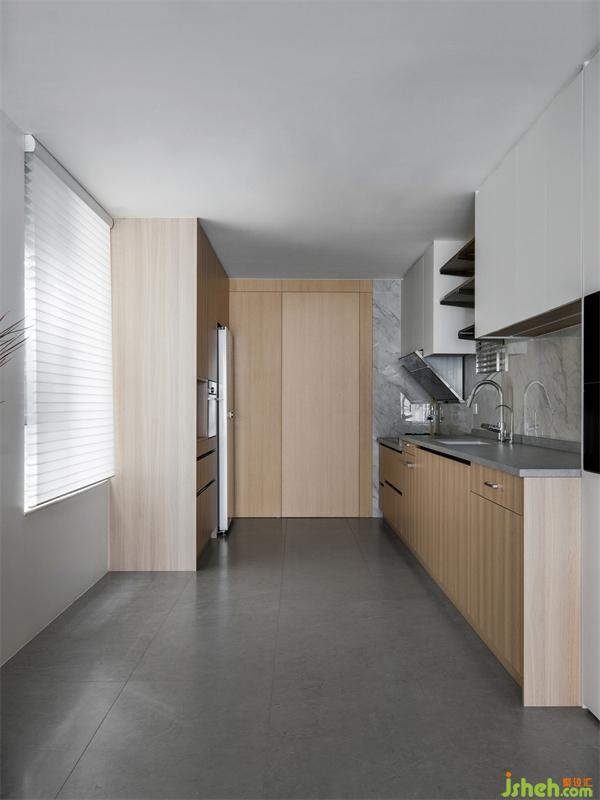 線(xiàn)條頂面,圓形燈膜,木色柜體相得益彰,形狀,材質(zhì),色彩,豐富空間層次,平衡視覺(jué)上的整體美感。