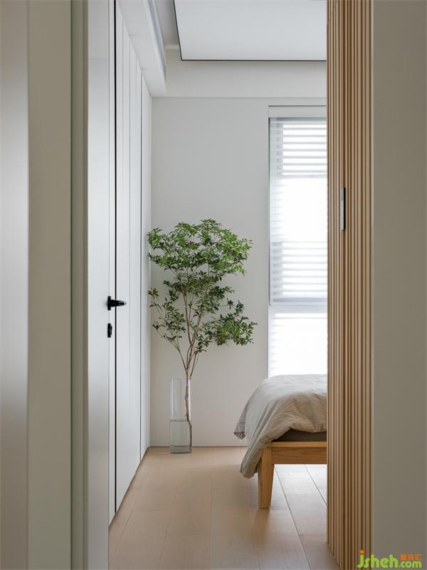 4、主臥木格柵柜體與隱形門,滿足收納及功能區(qū)的使用;