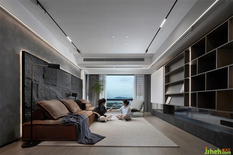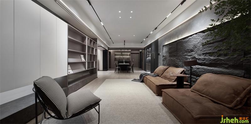 石皮背景墻的獨(dú)特感,讓家有了自己的特色,毛石拼成的整塊實(shí)墻,極具融合感和立體感,深圳家居設(shè)計(jì)打造整面墻的收納柜,底部留空,搭配鏡子,讓柜體更輕盈,書柜集收納和展示功能一體。