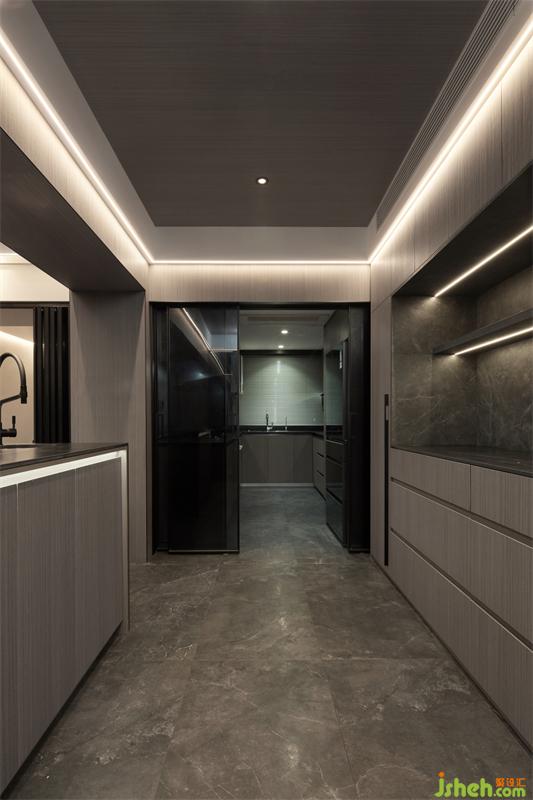 玻璃移門分割且鏈接廚房和餐廳的關(guān)系,推開移門也足夠藏下人間煙火氣,半開式的設(shè)計(jì)在考量互動(dòng)體驗(yàn)之余,讓空間盡顯純粹、干練,生活的柴米油鹽,生活娓娓道來~