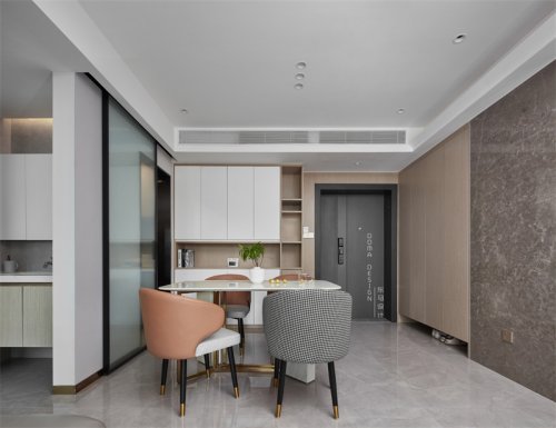 材料運用:木飾面、木紋磚、木地板、藝術(shù)漆