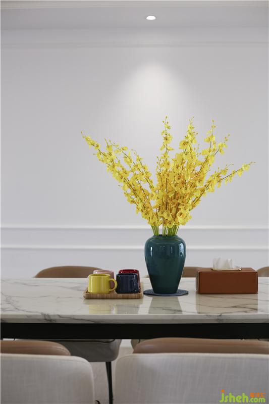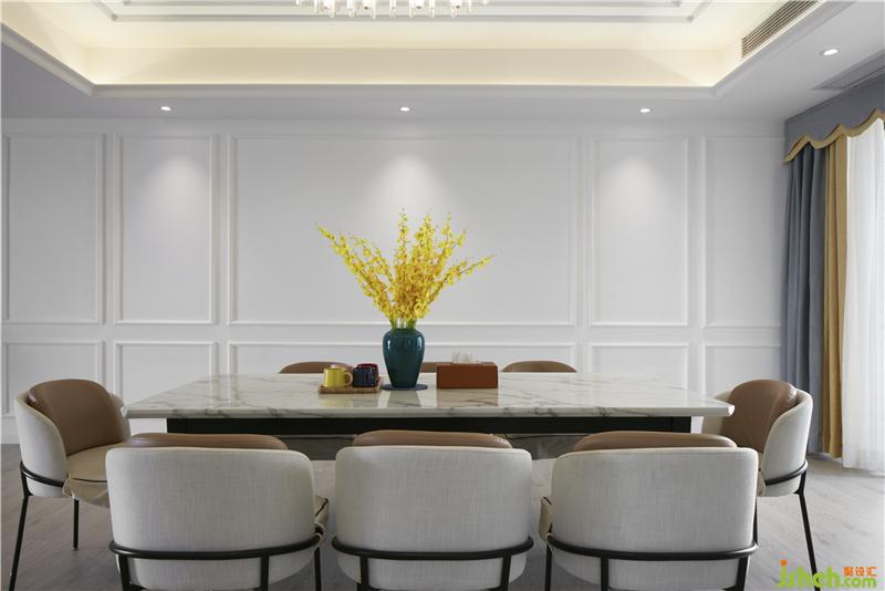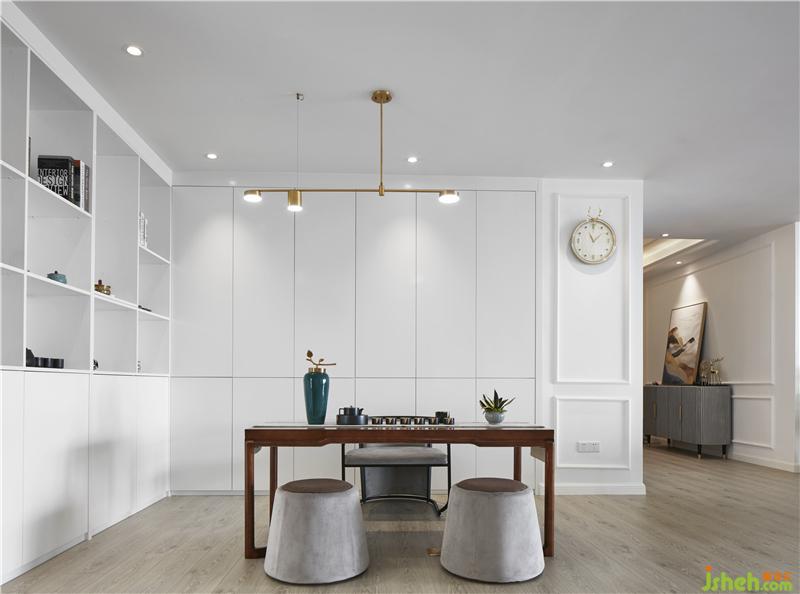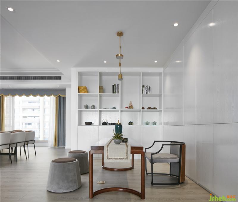 茶聊區(qū)運(yùn)用極簡(jiǎn)的設(shè)計(jì)手法,開放式的布局,造型干凈利落的頂面與墻面,體現(xiàn)出現(xiàn)代簡(jiǎn)約生活的品質(zhì)感。混合帶有新中式元素的家具,整個(gè)空間在白色的基調(diào)下,輔以精致的裝飾工藝品為點(diǎn)綴。室內(nèi)設(shè)計(jì)師