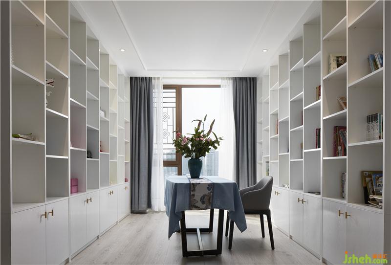 書吧區(qū),這個區(qū)域被風(fēng)水師傅劃分為不可停留區(qū),整個空間是以收據(jù)書籍收納為主的過渡空間。