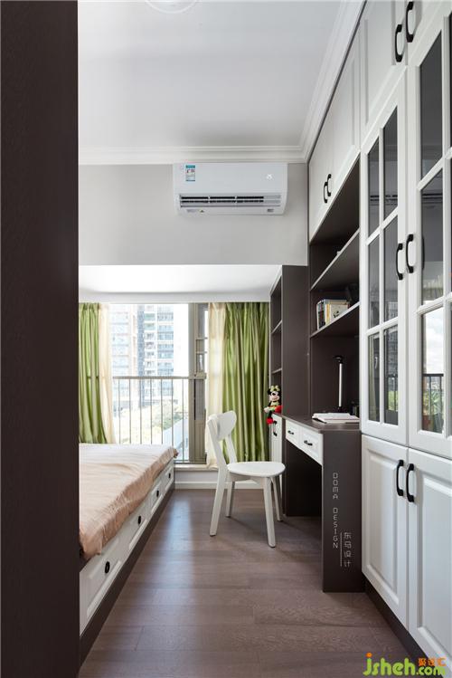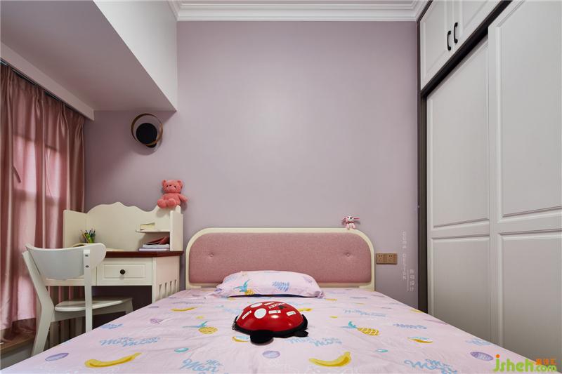 在色調(diào)上跟客廳統(tǒng)一協(xié)調(diào)。家私選用莫迪蘭色系,硬裝與軟裝在色溫上的碰撞,二者完美地銜接。