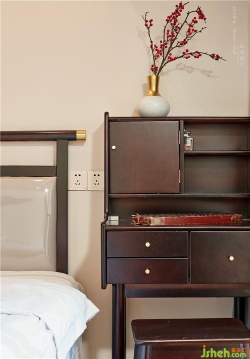 主臥的梳妝臺是業(yè)主之前的嫁妝,床與床頭柜也是舊屋的,放在新的環(huán)境中也豪不失協(xié)調(diào)。