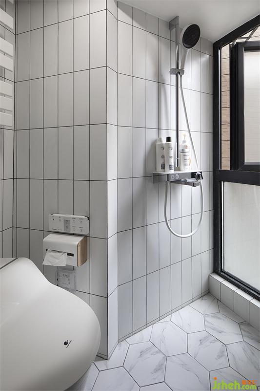 白色小磚的豎向鋪貼方式,讓這個(gè)狹小的空間視覺(jué)看起來(lái)更高聳,大氣。