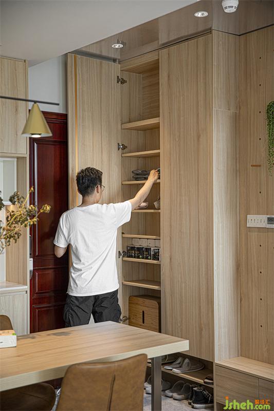 ①利用進(jìn)門的左側(cè)設(shè)計(jì)了一排鞋柜預(yù)留3/5是坐的位置。